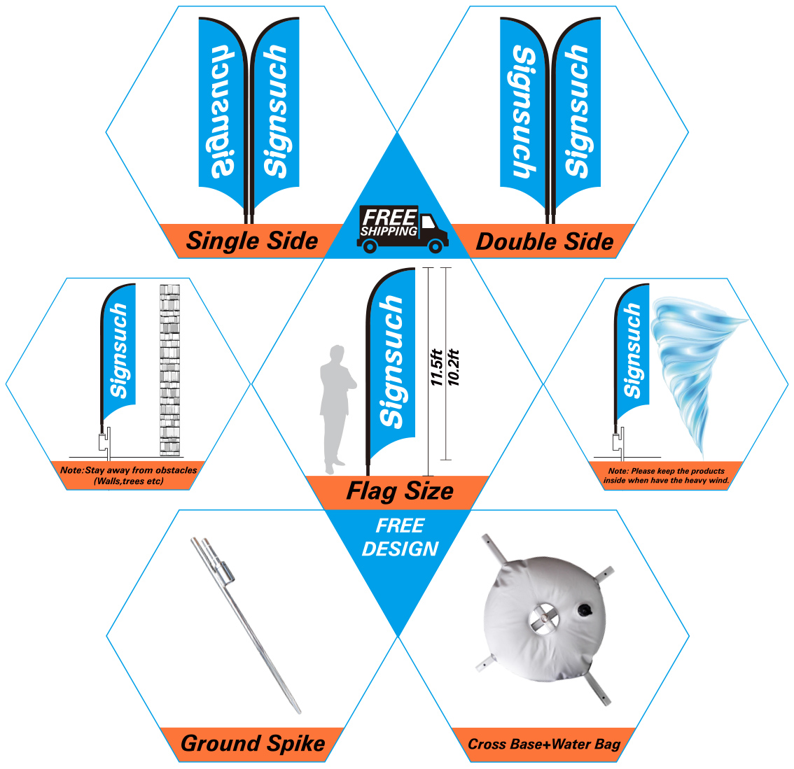 Wave 10FT Custom Feather Flags Kits with Printing